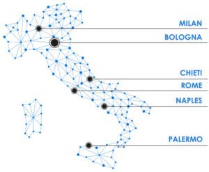 Cineca has six locations: Bologna, Roma, Milano, Roma, Napoli, Chieti, and Palermo.